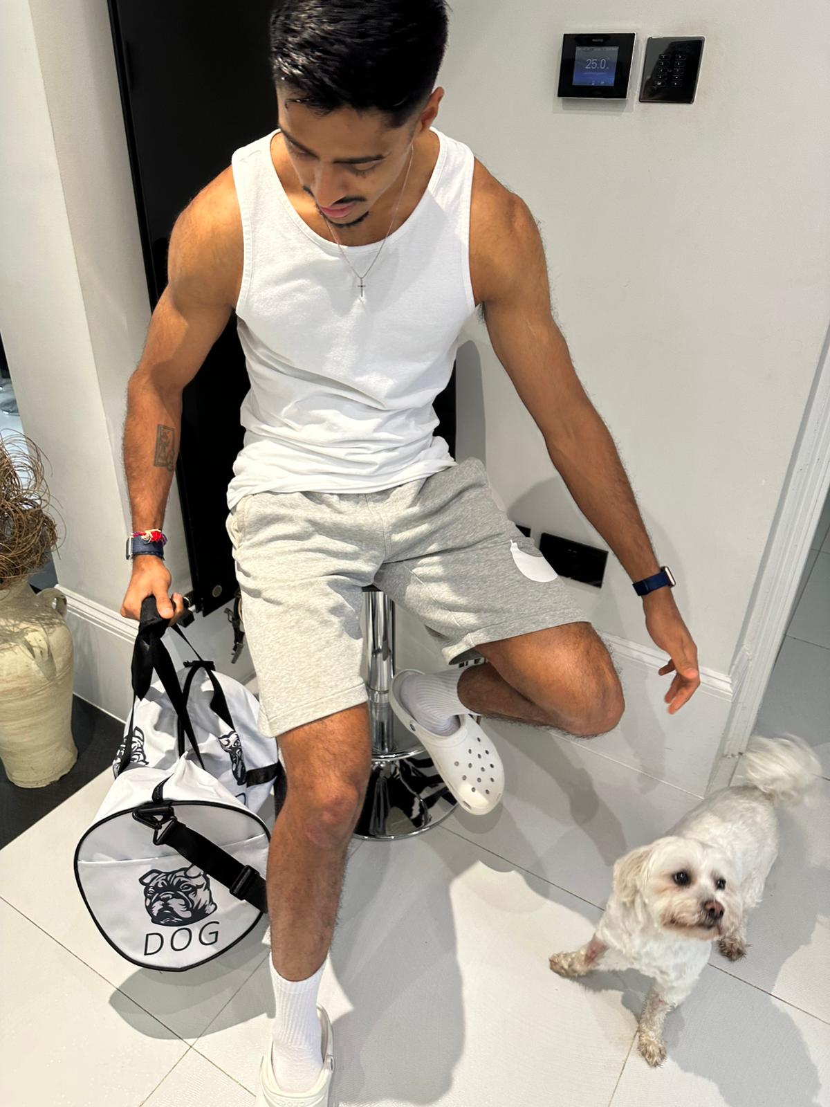Level up your workouts with the DOG Classic White Gym Bag — durable, water-resistant, and built for leaders who move with strength and style.