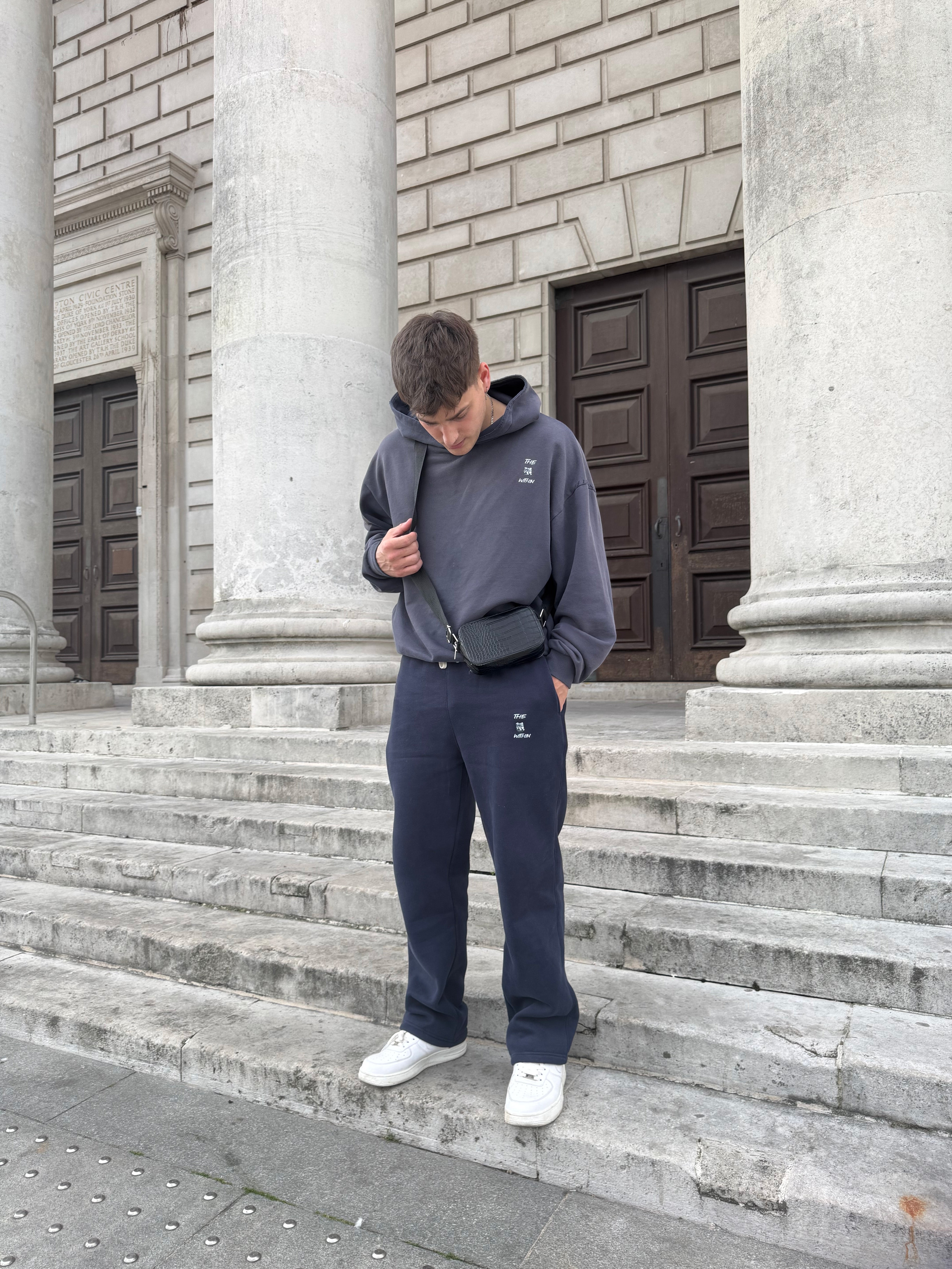 The DOG Within Faded Navy Hood and DOG Within Navy Trackies are paired here as a complete set for those who move with purpose and trust their instincts.
